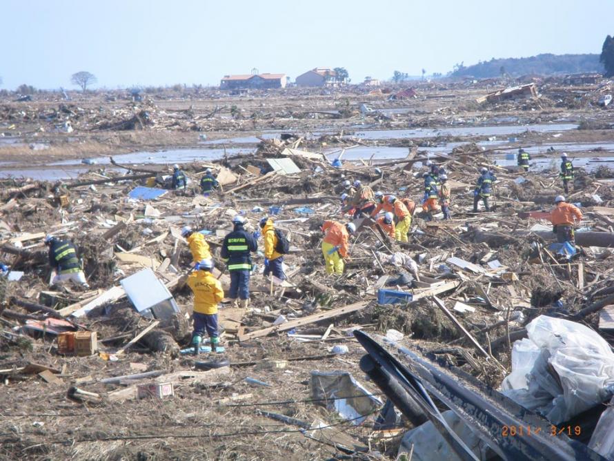 긴급소방원조대의 수색 활동(와타리 지구 소방본부)