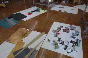 できあがった、あるいは途中の、AマップとBマップを各人が並べて床におき、全員で見て歩き、イメージ変化とその表現を楽しんで終了した。