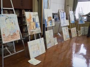 15時に片付け始め、最後は1日目の模写作品と並べて、互いの作品や表現を鑑賞した。