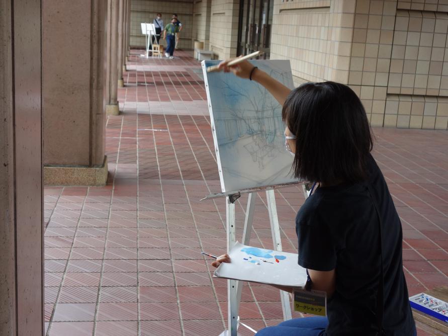 2日間、場所ごとの特色を発見し、想像力を働かせて、空間をよく見てとらえて描くことで、身を置いた空間が別の顔を持った世界に広がり、絵が変化するときがあったように見える。濃密な制作の時間の中で、建築の空間自体が活き活きと動き出す感じがあった。
