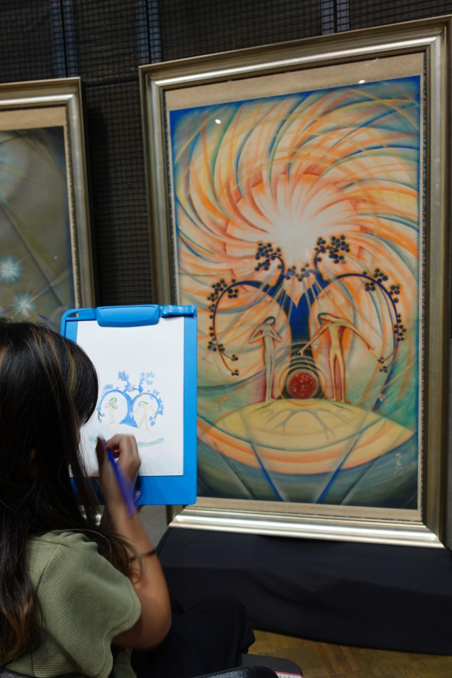 展示されているレプリカ作品を鑑賞し、気に入った作品や、その部分を真似て描く「模写」に挑戦してもらいました。登米会場では、小学生の参加が多く、一人平均20分~30分かけてじっくりと描いていました。角田会場では大人の方の参加も多く、1時間以上も丁寧に描き込んでいた方もいました。描いた絵には紙の枠を付けて持ち帰ってもらいました。