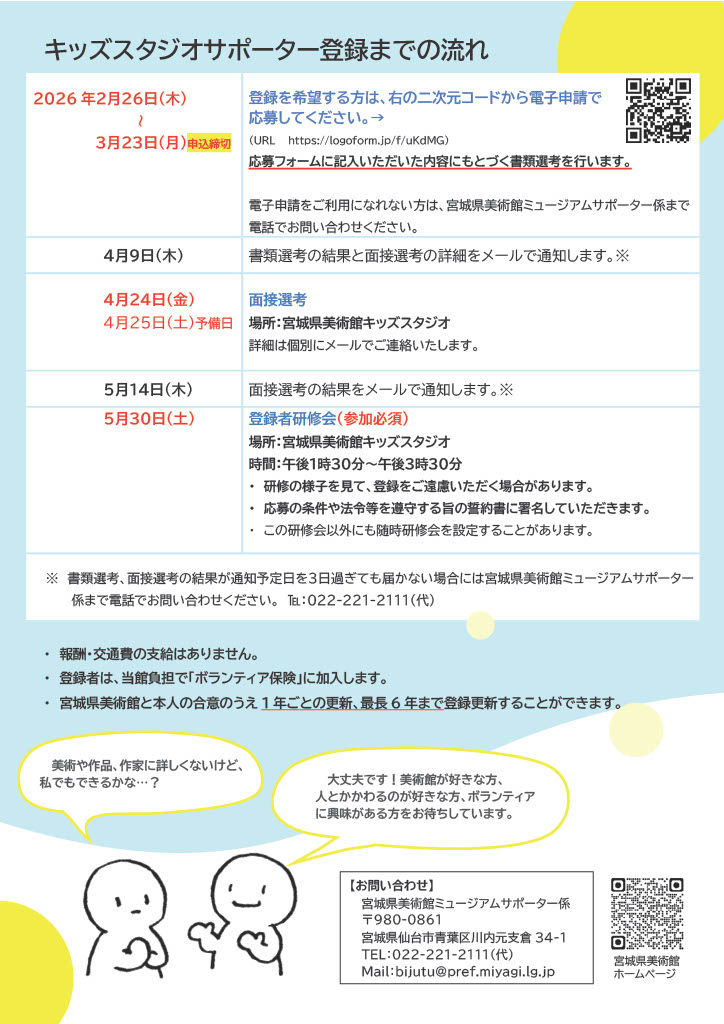 ※詳細はチラシ及び宮城県美術館ボランティア活動実施要綱をご確認ください。