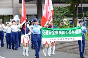 9月20日(金曜日)、宮城県警察本部前駐車場において「令和元年秋の交通安全県民総ぐるみ運動」の出発式を行いました。