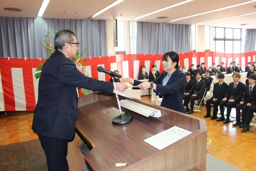 はじめに、学部代表に鈴木英作校長から卒業証書が手渡されました。