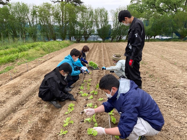 野菜専攻の作業風景(レタス定植作業風景)