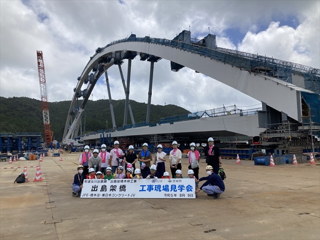 県では、普段は見ることができない建設現場の見学を通じ、子ども達に建設業への理解を深め興味を持ってもらうため、施工業者の協力のもと一般財団法人宮城県建設業協会と共催で、小学生とその保護者を対象とした建設現場見学会を開催しました。