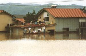 増水は翌日の昼まで続き、懸命の救助が行われた(姥ヶ沢地内)