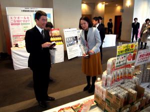 (出展ブースを見学する村井知事)