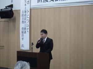 講演「事務サポートについて」では河南矢本土地改良区工務課の菅原様から,多面的機能支払交付金事業で取り組んでいる広域化組織との事務委託契約について,ご講演いただきました。