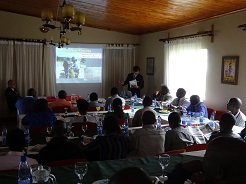 今回の専門家派遣では,宮城県から現職派遣している青年海外協力隊(以下,JOCV)の活動状況を確認したほか,リロングウェ農業大学を視察し,人材育成方針や今後の事業展開などについて,マラウイ国政府幹部職員と話し合いました。また,マラウイ国の灌漑技術者,農業普及員約40名を対象に技術移転セミナーを開催し,宮城県側からは「農業用水の管理について」,「日本の大学における技術者教育」,「GISを活用した農地整備」,「土地改良区制度の導入」,「自然素材を使った灌漑について」の5項目について,講義を行いました。そしてマラウイ国側からは昨夏に本県で研修を受講した4名の技術職員から「宮城県での研修報告」について発表を行い,その後活発な議論が交わされました。