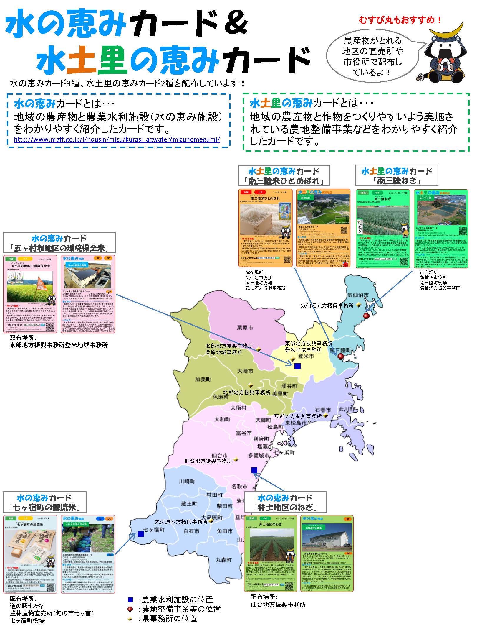 地域の農産物と農業水利施設(水の恵み施設)を紹介したカードです。