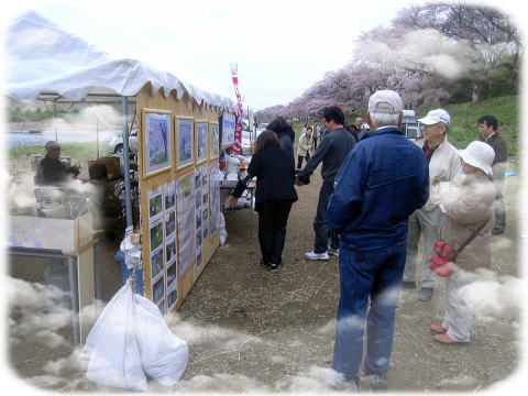 平成20年4月13日(日曜)に白石川右岸の韮神堰の広場において,白石川のスマイルサポーターである「白石川だいすき倶楽部」のみなさんと桜並木の下,コラボレーションイベントを開催しました。