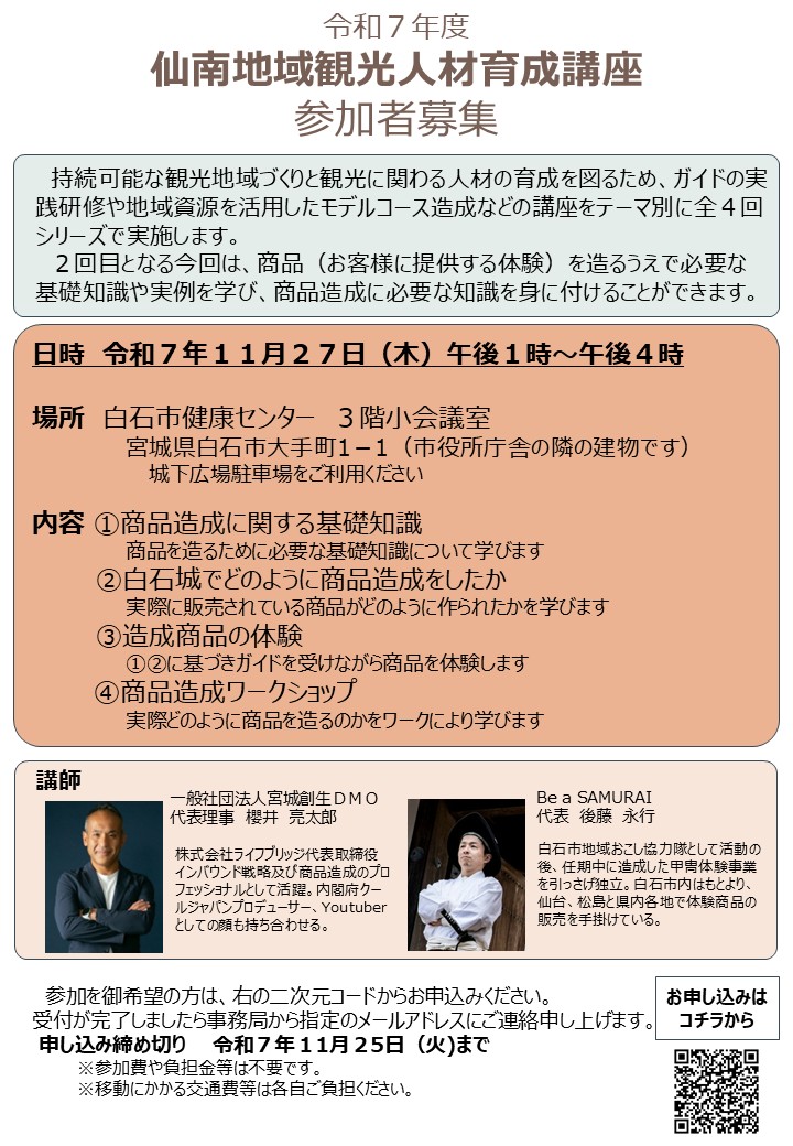 令和7年度仙南地域観光人材育成講座(第2回目)参加申込フォーム(外部サイトへリンク)