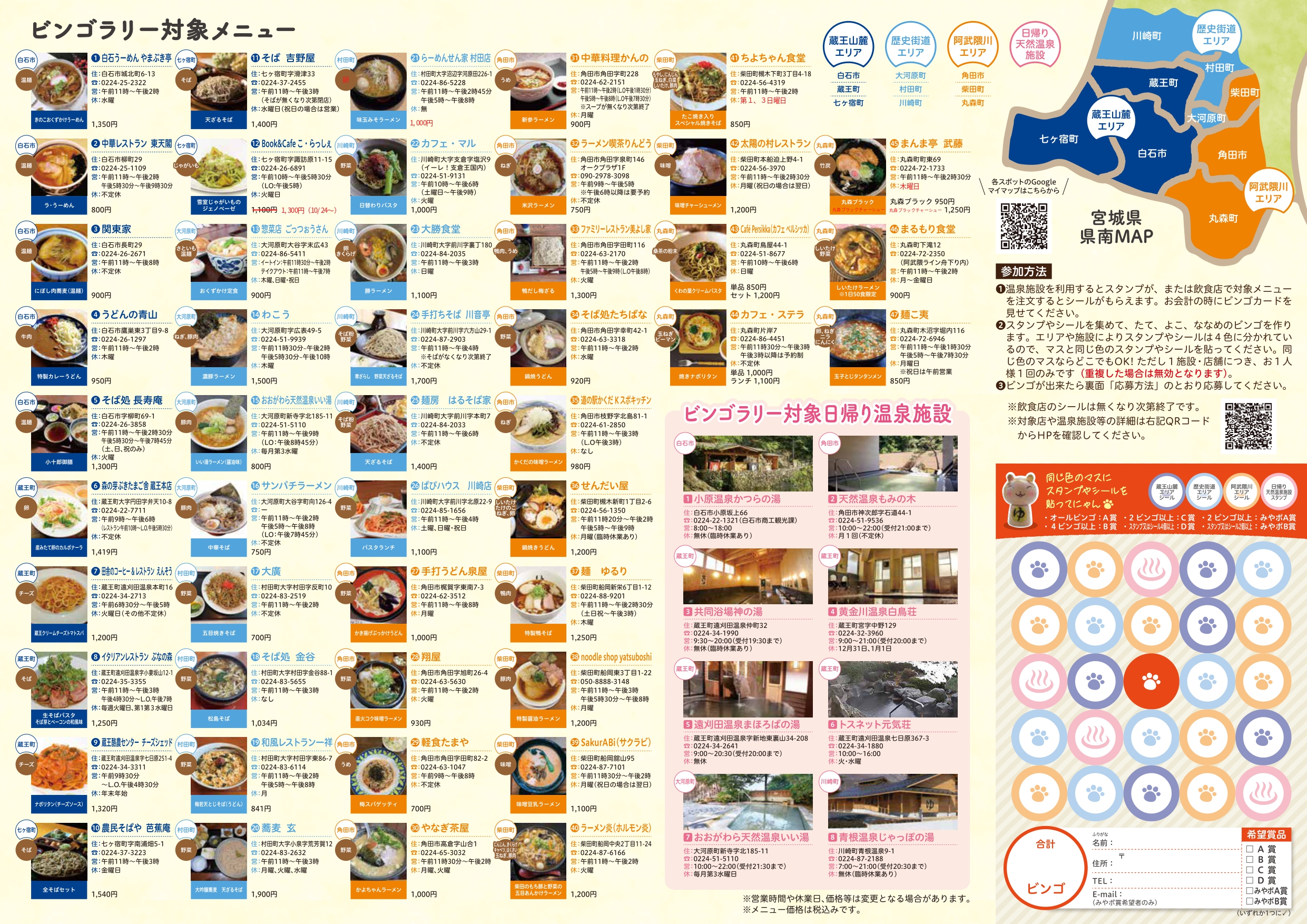 温泉と仙南地域の食材を使った麺料理店を巡る、楽しくておいしいビンゴラリー。