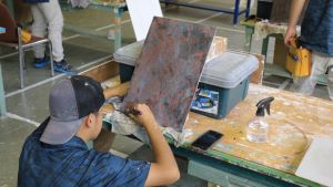 木目塗装、リン酸処理塗装、マーブル塗装、大理石塗装と大変興味深い塗装方法の技術を伝授して頂きました。自分のイメージを上手く表現できないことがありながらも、楽しく真剣に勉強することが出来ました。