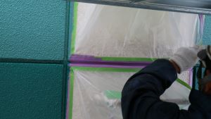天然石が入っていて重いため、養生が不十分だと簡単に養生が剥がれてしまったり隙間に塗料が入り込んでしまいます。塗る前と塗りながら、塗り終わりにも確認することで、漏れが無く作業出来ました。
