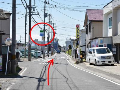 ファミリーマートの大きな看板が立っている交差点を右折します。