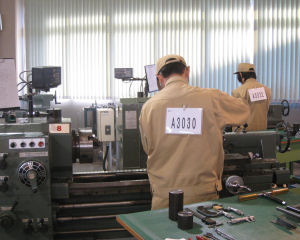 1月18日に本校の機械エンジニア科実習場で技能検定実技試験(機械検査2級)が行われ,1年生8名,2年生1名が受検しました。