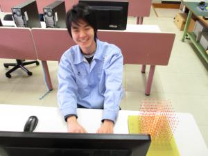 写真は,最初の工程でもある設計をCAD(コンピューター支援の設計)を使って作業している風景です。