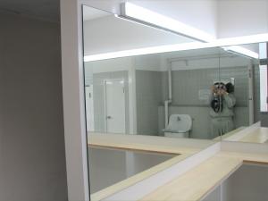 パウダールームの改修工事で、棚を製作しカウンターの取付後に、塗装工事と鏡の取付を行いました。いよいよ大詰めです。完成を目指し修了式前日まで頑張ります。