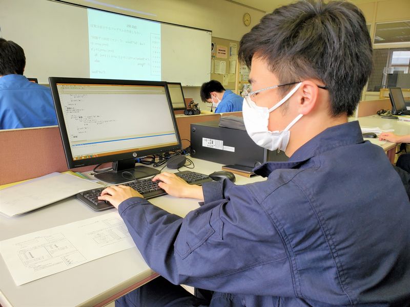 自動制御実習では1月24日に行われるシーケンス制御の技能検定に向けて訓練をしています。1年生は3級、2年生の一部の学生は2級にチャレンジします。全員が合格に向けて頑張っています。