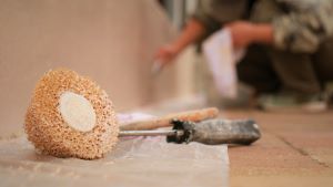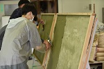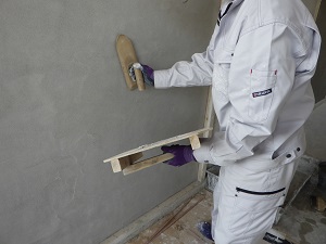2.塗り厚を意識して,鏝塗(こてぬり)作業をします。