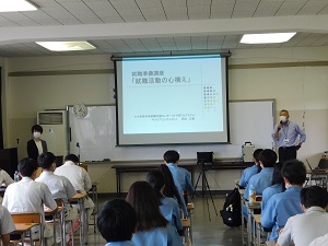 1年生を対象とした、北部地方振興事務所主催のオンラインによる県内企業の合同説明会に参加しました。説明会では、機械関係の企業を中心に、担当者からの説明に耳を傾けていました。2年生に進級した後、就職活動が始まるため、県内の機械関連企業について知る良い機会となりました。