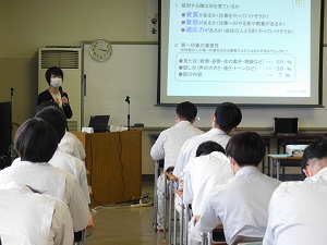 自動車,バイク,自転車を利用して通学する訓練生もいることから,それらの安全利用についてもお話をしていただきました。