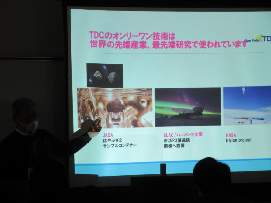 株式会社ティ・ディ・シー様より、常務執行役員様及び修了生(1名)をお迎えし、機械エンジニア科1年生と2年生対象の職業講話を開催しました。利府町に本社・工場を構え、超精密加工を得意としており、様々な分野で活躍している会社です。前半は常務執行役員様より、会社概要及び、これまでの加工実績をお話いただきました。後半は修了生より、現在の主な業務内容や、会社での過ごし方をお話しいただきました。在校生たちは、社会人としての心得を学べる、有意義な時間となりました。