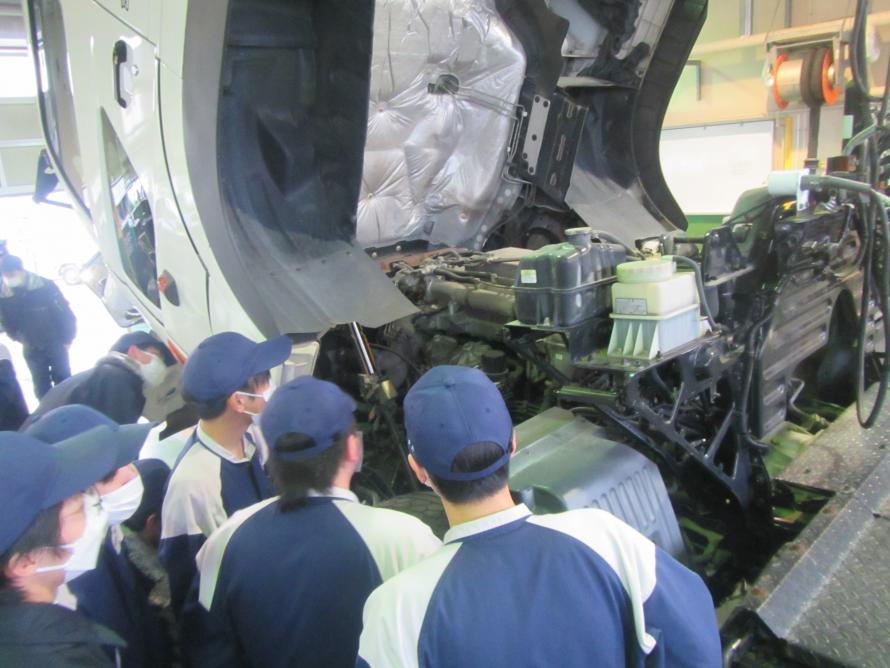 宮城日野自動車株式会社様にお越しいただき、自動車整備科1年生対象の技術講習を開催しました。座学ではブレーキの解説、実技ではリヤハブの脱着、電気実験、故障診断を体験しました。部品と工具の大きさに驚いているようでしたが、全員で構造を理解するために熱心に通り組みました。