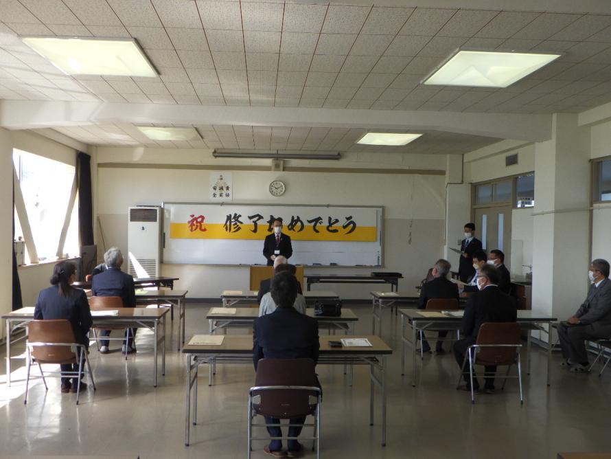 第二学期終業式が行われました。新型コロナウイルス感染対策として,全体集会は行わず,放送により行いました。校長あいさつでは4月からの9か月を振り返り,3月に修了を迎える訓練生に就労に向けた心構えや2年課程の1年生に対して冬休みの過ごし方の話などがありました。全体に対しては引き続き健康管理の重要性を話されました。