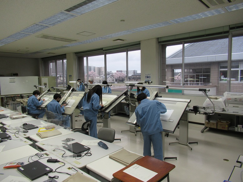 現在建築業界の図面は,パソコンソフトで描くCAD図面が主流です。このことから建築製図科では,CAD操作についても習得します。