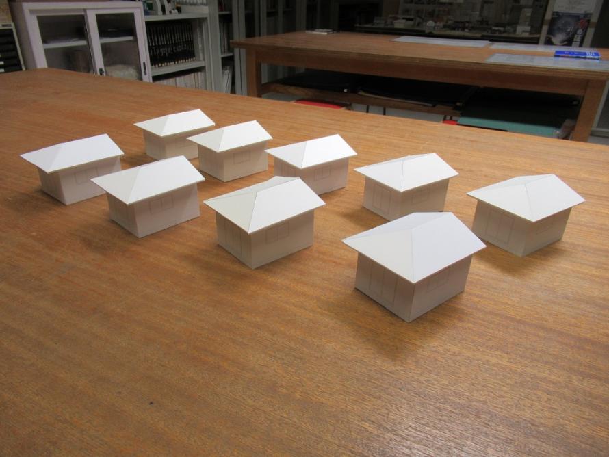 本格的に垣根を作る前に,ミニチュアの垣根の模型を製作しました。木の板や竹串を加工して精密な出来栄えを目指します。造園科では,数少ない机上での作業ですが,訓練生は休憩時間も短縮して取り組んでいました。