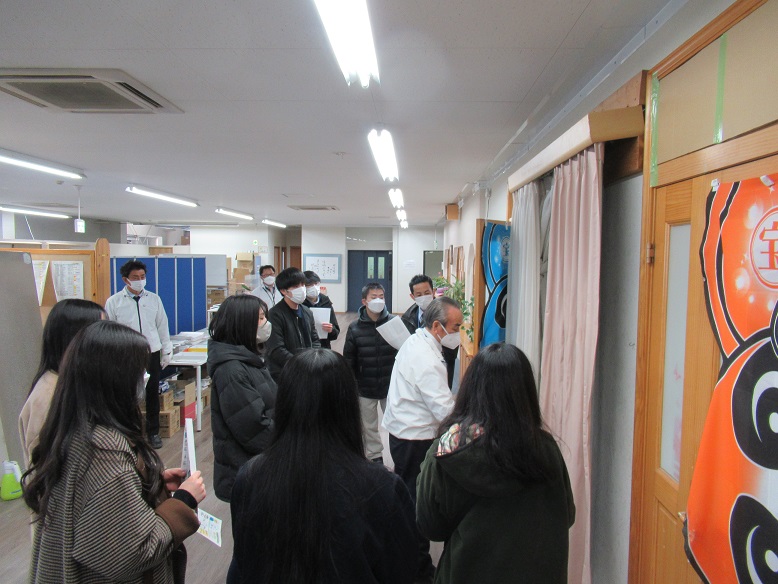 見学した2社は、共に住宅生産の企業で、骨組みの材料、生産工程、及び、耐震に対する考え方に違いはありましたが、環境保全及び1棟ごと顧客ニーズへの対応を大事にしている姿勢は2社共通しており、学生も共感していました。