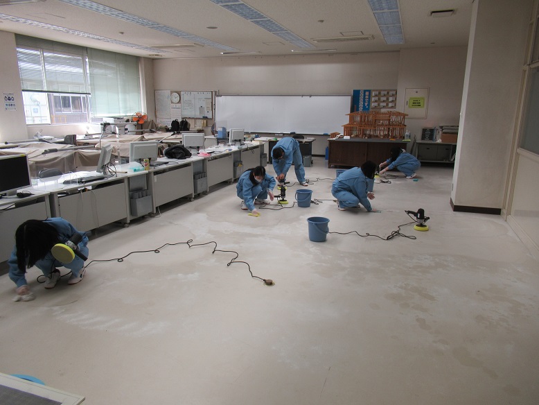 明日の修了を前に、全員で大掃除をしました。1年間学んだ校舎に感謝し、次の後輩に気持ちよく使っていただくため、隅々まで磨き上げました。学生は掃除をしながら1年間の様々な出来事を思い出していたようです。