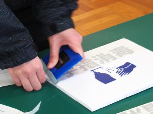 マーキングフィルムとスチレンボードを使ってコロナ感染防止対策グッズを完成させました。