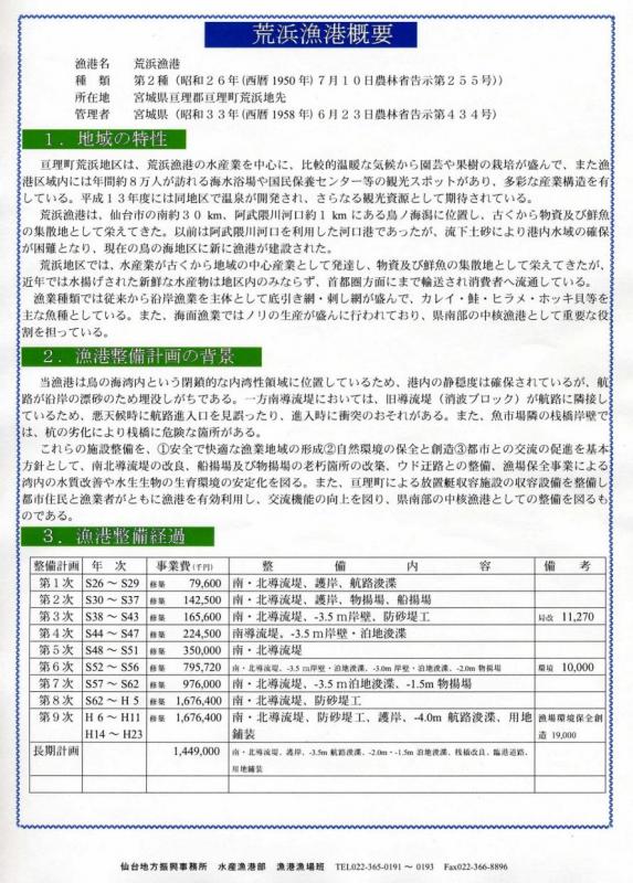 トップページ > まちづくり・地域振興 > 港湾・漁港 > 県内の港湾情報 > 荒浜漁港概要