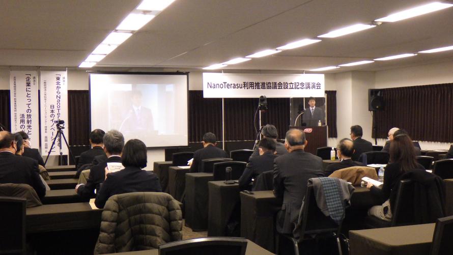 NanoTerasu利用推進協議会の設立に引き続き、設立記念講演会が開催されました。協議会構成団体関係者、企業団体等の皆様が多く参加され、NanoTerasuへの期待の高さが伺えました。