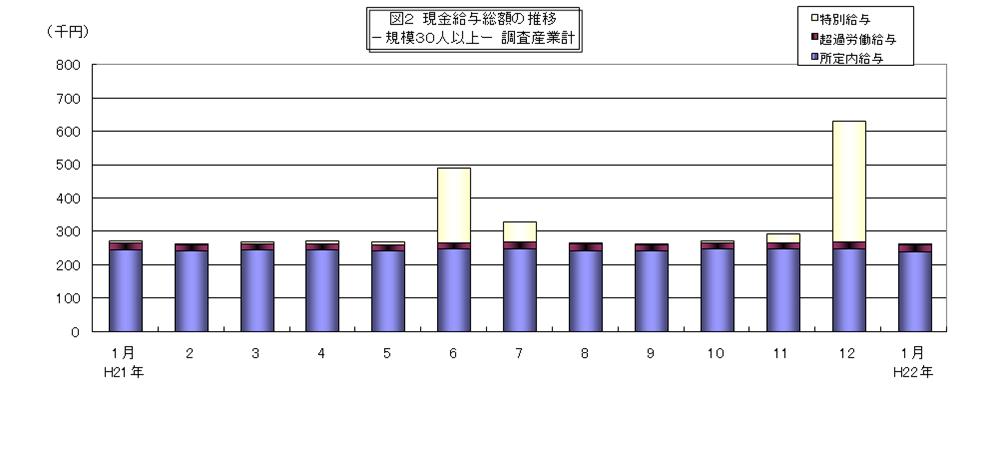 このうち,きまって支給する給与は26万1563円,前年同月比1.1%減(同23万8064円,前年同月比1.1%減)となり,特別に支払われた給与は2403円,前年同月比65.5%減(同 8196円,14.1%増)となりました。