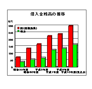 景気の停滞等により地方税等の収入が伸び悩み、地方の財政運営が困難な事態に直面した年度においては、地方財政対策上何らかの措置がとられなければならないことは事実であり、このような場合臨時的な財源対策の一環として地方債の増額措置がなされることも止むを得ないものと考えられる。しかしながら、このような対応を継続することは、当該年度の財源の不足を将来の税収の増額を期待して後年度の負担に置き換えることに他ならず、低成長を基調とする社会経済環境下においては、後年度への影響度はより高いものとなることに留意すべきであり、財源の面では基本的に、地方税、地方交付税等の一般財源を充実し、地方債への依存度を引き下げていくべきものであろう。